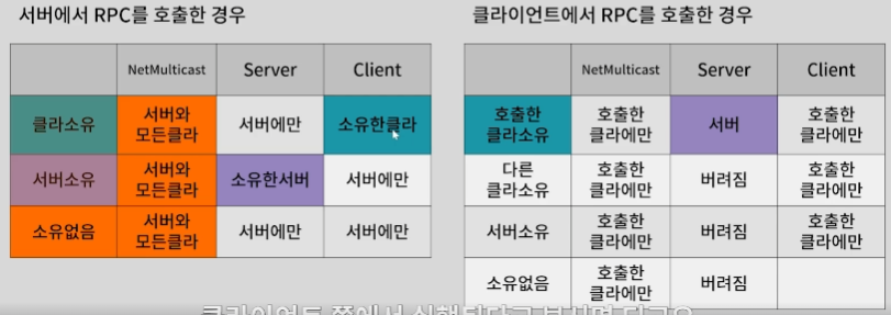(2) Client, NetMulticast는 서버에서만 호출 / Server는 클라이언트에서만 호출
