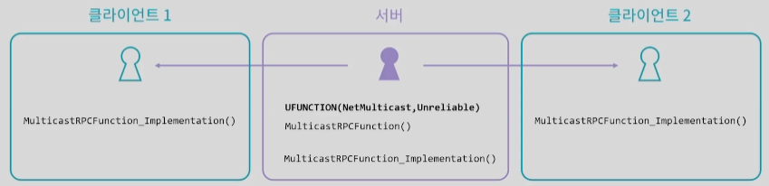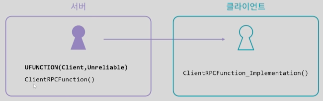 - 언리얼 엔진 구조에서 유일하게 클라이언트가 서버의 함수를 호출할 수 있는 기능