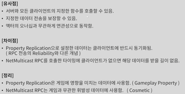 (4) Tick 및 플레이어 입력 등 빈번하게 호출되는 함수에 Reliable RPC를 사용하지 말 것 -> 대기열이 넘칠 수 있음
