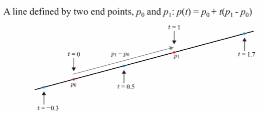t가 [0, ∞]일 경우 p(t)는 ray