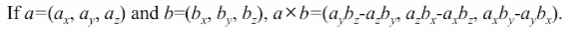 - a = b라면, a x b = (0, 0, 0) 즉, 0임