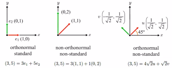 non-orthonormal basis: 수직이 아니며 normalize되지 않은 기저