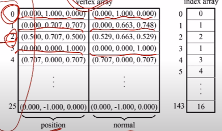 48개의 삼각형으로 이루어져 있음 -> 144개의 index array를 가짐