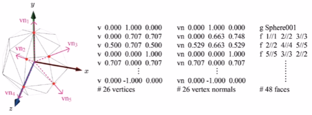 면 f: face (각 꼭짓점의 정보 v//vn)