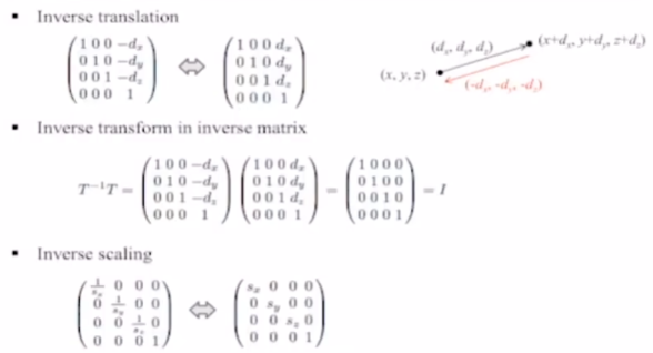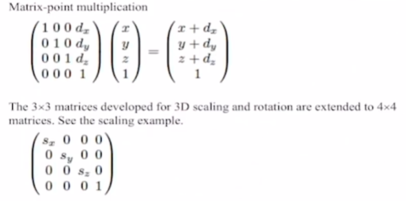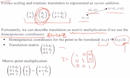 기본적으로 덧셈이 편하지만 행렬 곱셉으로도 표현이 가능함 (동차 좌표 Homogeneous Coordinates)