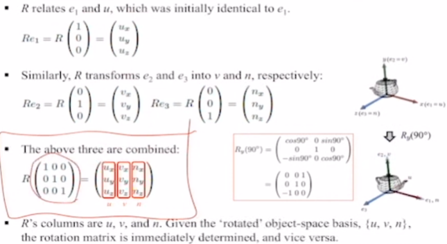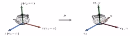 R(회전 입력값)을 알면, object-space의 기저 { u, v, n }을 쉽게 계산 수 있음