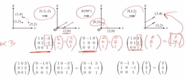 크기, 회전의 경우 2x2 행령이므로, 이동과 같은 3x3 행렬로 변환해 계산함