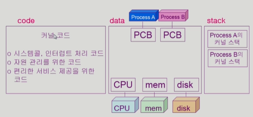 - CPU가 어디까지 수행했는지, 수행 상태를 나타내는 하드웨어 문맥 -> Program Counter가 어디를 가리키는지, 각종 register가 무슨 값을 가지고 있었는지