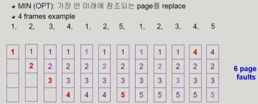 - 빈 frame이 없으면 일부 프로세스를 swap out(suspended)시킴