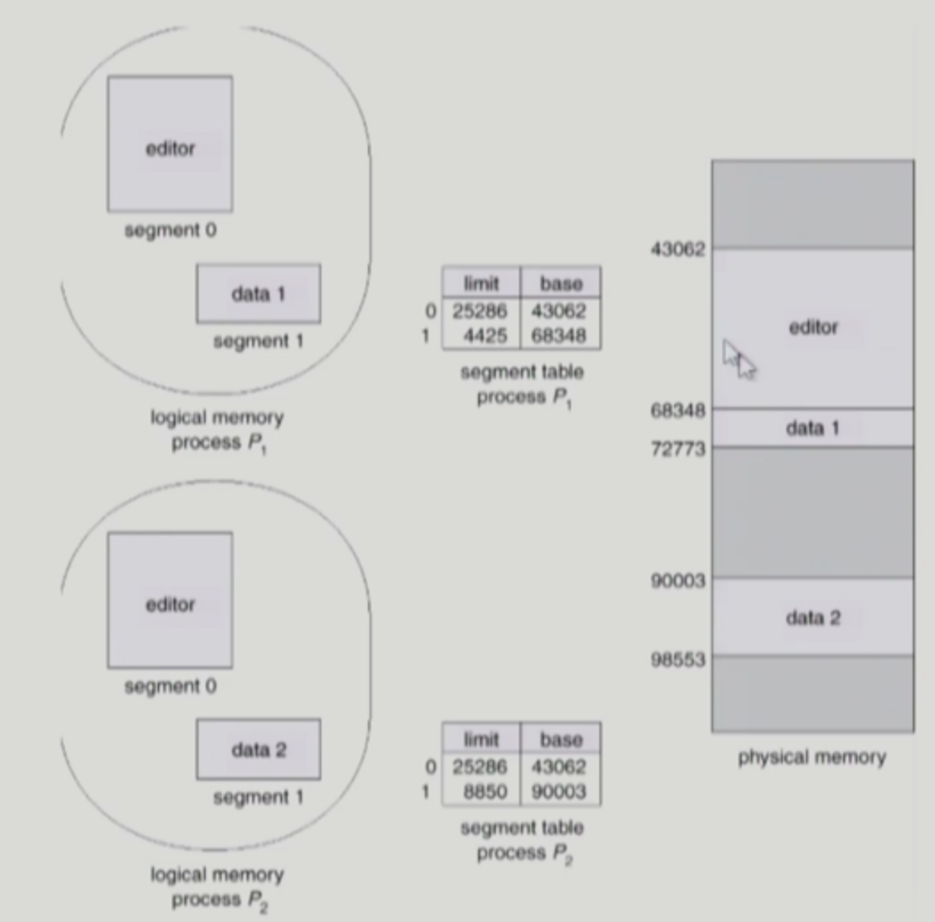 segment는 의미 단위이기 때문에 공유나 보안에 있어서 paging 보다 훨씬 효과적임