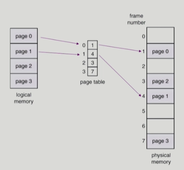 2. 세그멘테이션: 물리 메모리를 의미 있는 단위로 자름(코드 세그먼트, 데이터 세그먼트, 스택 세그먼트 등), 크기가 균일하지 않음 (단점: 크기가 가변적이기 때문에 프로그램에 맞는 크기를 가진 세그먼트를 찾아야 함)