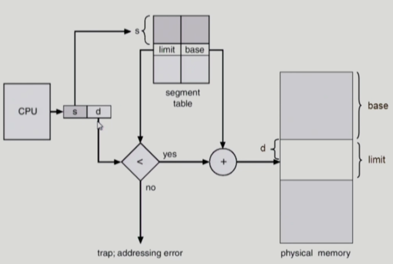 Segment table base register: 물리적 메모리에서의 segement table의 위치
